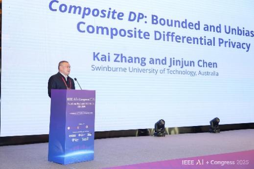 IEEE AI+ Congress 2025大会设有8场前沿主题报告,邀请多位国际顶尖专家作主旨演讲,澳大利亚伍伦贡大学Willy Susilo教授为大家带来了主题为《云计算安全》的主题报告。他深入探讨了在当前信息技术基础设施中,如何提升云计算的数据共享与外包计算的安全性问题,介绍了领域内的最新研究进展和未来发展方向。新加坡南洋理工大学Dusit Niyato教授为大家带来了主题为《面向边缘通用智能的Agentic AI与智能代理化》的主题报告。他系统阐述了Agentic AI在边缘计算环境中的优势,强调通过感知-推理-行动闭环推动智能体在复杂异构环境中的自主协同。香港城市大学Yuguang Fang教授为大家带来了主题为《移动性带来机遇:面向智慧城市与低空经济的网络内资源调度》的主题报告。他提出以“移动中获取资源”的理念,用于支撑智慧城市和低空经济的服务部署,构建感知-通信-计算一体化的未来城市系统。英国纽卡斯尔大学Rajiv Ranjan教授为大家带来了主题为《智能边缘的未来:IoT-AI连续体中的渗透式元学习》的主题报告。他从IoT数据驱动的角度出发,提出将元学习与渗透式计算相结合,以实现资源感知与智能迁移的新型分布式AI体系。加拿大西安大略大学Xianbin Wang教授为大家带来了主题为《6G与生成式AI时代的可信机器协作》的主题报告。他从任务复杂度与设备异构性出发,提出通过语义信任链实现动态可信协作,保障分布式系统中的任务调度与执行效率。澳大利亚斯威本科技大学Jinjun Chen教授为大家带来了主题为《有界且无偏的复合差分隐私机制》的主题报告。他提出“Composite DP”机制作为解决传统DP偏倚问题的首个理论完整方案,为现实中有界数据的公平处理提供了全新思路。香港科技大学(广州)Yang Yang教授为大家带来了主题为《无线网络中面向大模型的协同边缘计算》的主题报告。他提出构建可信设备资源池的协同边缘计算架构,以支持大模型在资源受限设备间的高效训练与推理,推动AI服务在边缘落地。韩国高丽大学Minho Jo教授为大家带来了主题为《基于状态空间模型的Transformer架构优化》的主题报告。他分享了Mamba等新一代SSM模型的优势,解决Transformer在长序列处理中的性能瓶颈,并展示了其在自动驾驶预测任务中的应用成果。