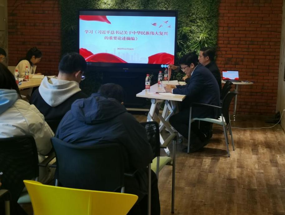 2025年12月26日,公共大数据智能应用与社会治理创新实践党支部在雅文楼1楼易青春举办“学思践悟复兴使命、立足本职勇担重任”主题党日活动。本次活动由党支部书记王崎同志主持,旨在通过深入学习习近平总书记关于中华民族伟大复兴的重要论述摘编及实施国家大数据战略、加快建设数字中国等方面的重要论述,结合大数据实验室建设实际,凝聚全员共识,激发奋进力量。支部全体党员、发展对象及入党积极分子参加了此次活动。